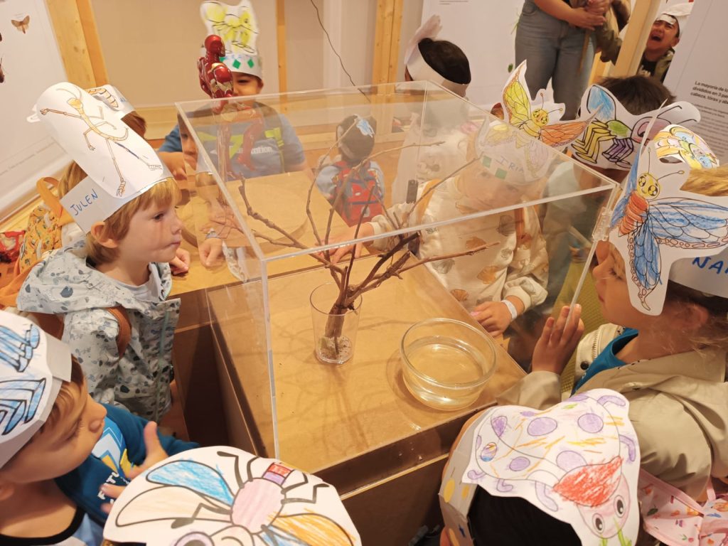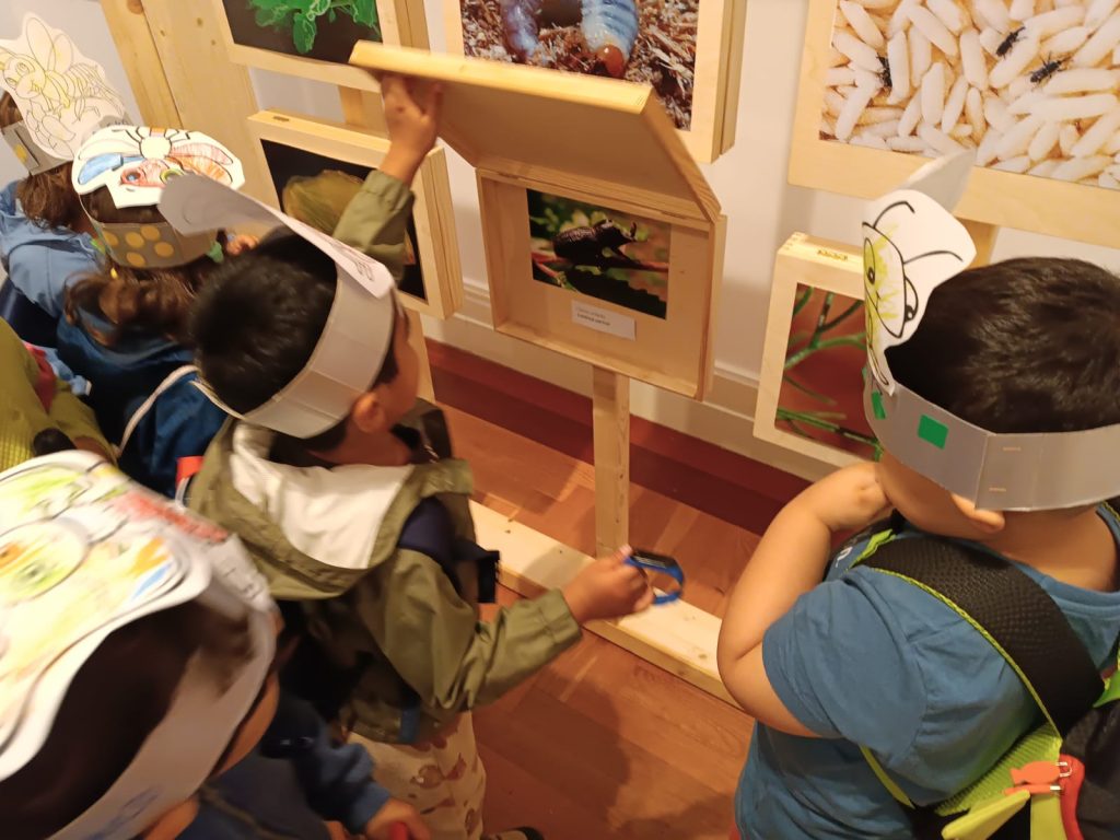 Nada más entrar, quedamos asombrados con el «bichopalo». Han visto de cerca una mosca doméstica y un piojo, ¡pero a una escala gigante! Esto nos ha mostrado la cantidad de ojos que tiene la mosca y el aspecto de un piojo. También nos ha sorprendido la metamorfosis de la oruga, aprendiendo cómo se convierte en una mariposa.