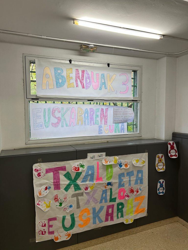 Hemos adornado los pasillos y aulas con diferentes lemas y motivos en euskera y como colofón, una gran pancarta se ha colocado en el exterior del centro para conmemorar este día tan importante, llevando nuestro mensaje a toda la comunidad.