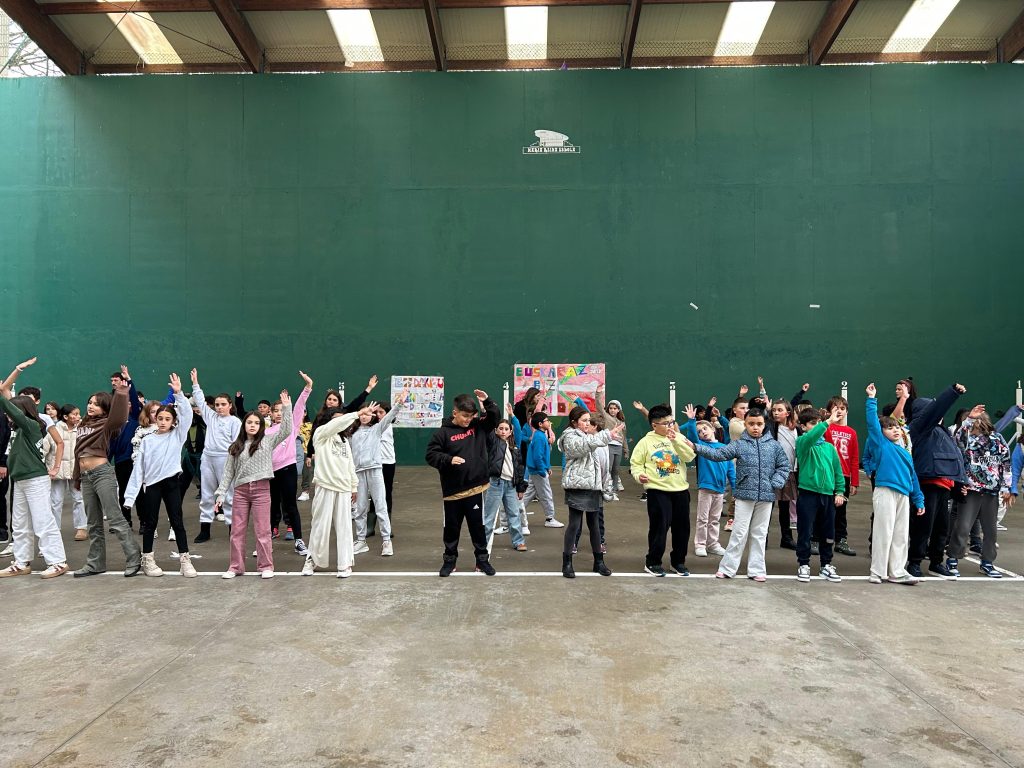 En Primaria, ni la lluvia ha podido apagar nuestro espíritu festivo. En el frontón de la escuela el alumnado ha cantado y bailado con energía la canción «Euskera da gure lema», haciendo que el estribillo resonara por todo el centro.