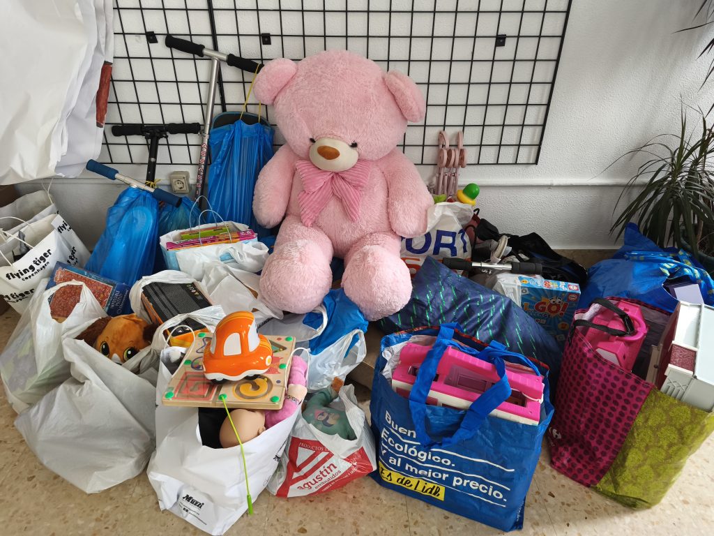 Maria Reina Eskolako ikasleak eskuzabaltasun handia erakusten ari dira, eta elikagaien eta jostailuen dohaintzak erritmo onean iristen ari dira, gure bilketa gunea betez.