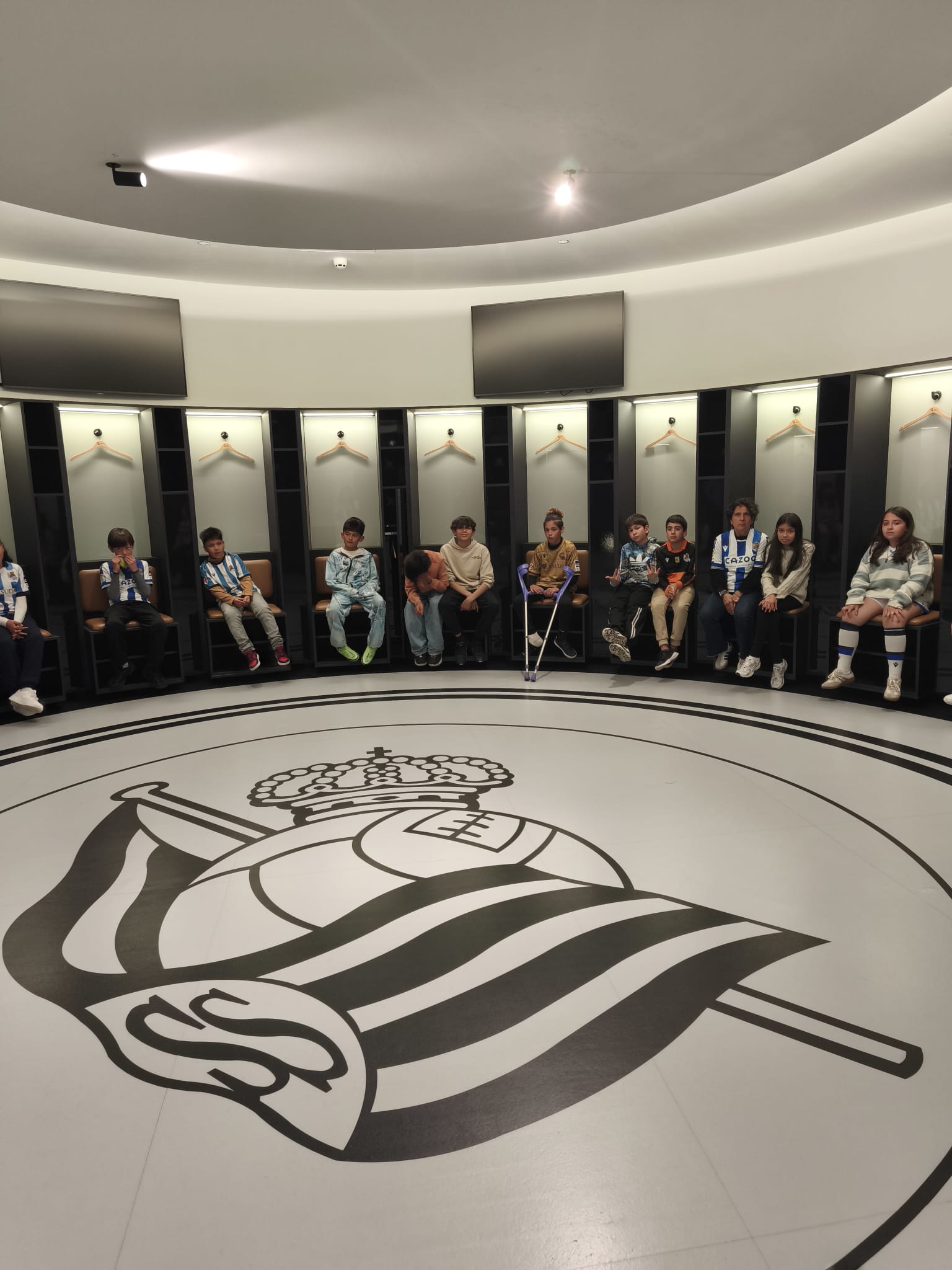 Ibilbidean zehar leku asko bisitatu genituen: jokalarien aldagelak ezagutu genituen, eta baita taldeak erabiltzen dituen sukaldea eta jangela ere. Prentsa aretoa, aldiz, kanpotik ikusi genuen oraingoan. Momentu berezienetako bat zelaiaren bazterrera hurbildu ginenean bizi izan genuen, jokalariak egoten diren bankilloan esertzeko aukera izan genuelako. Horrez gain, Txurdin gurekin egon zen uneoro; oso dibertigarria izan zen eta barre algara asko eragin zigun bere txantxekin. Esperientzia borobila izan zen futbol zelaiaren bihotza hurbiletik ezagutzea eta proiektu polit honetan parte hartzea. Eskerrik asko Real Sociedad Fundazioari gonbidapenagatik!
