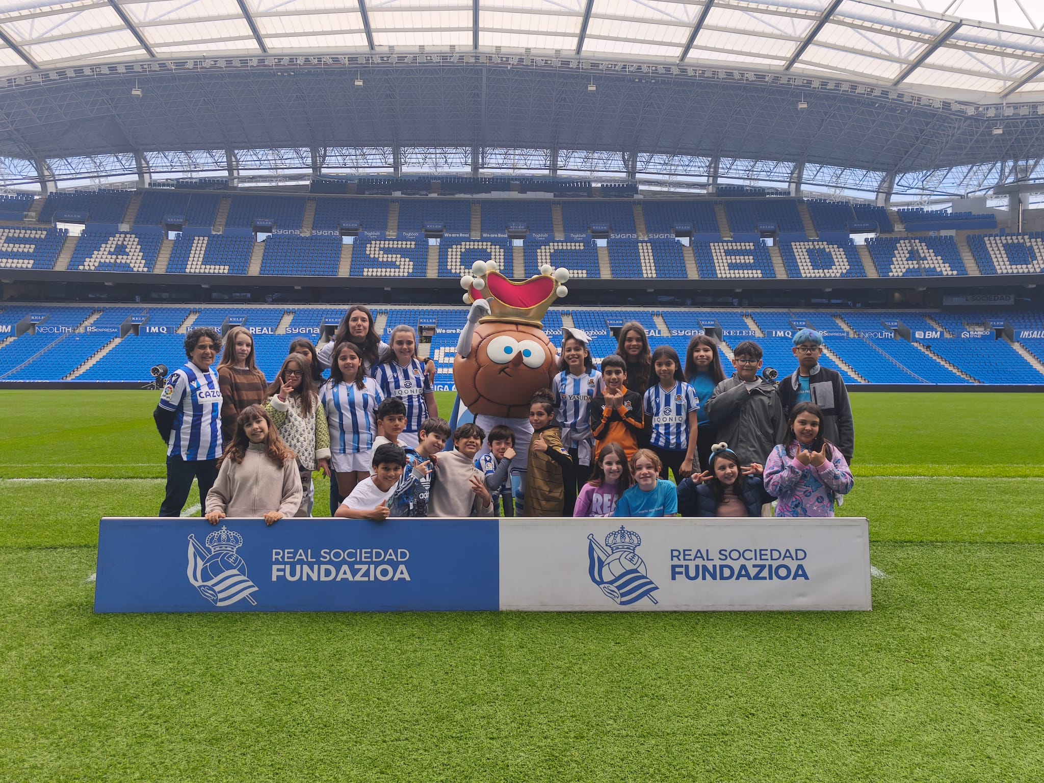 Atzo, LH5eko ikasleok egun gogoangarria pasatu genuen Anoetan, Real Sociedad Fundazioak antolatutako Amets bat proiektuaren barruan. Egunari hasiera emateko, kiroldegira joan ginen lehenengo eta bertan bi kirol ekintza desberdin burutu genituen, gure artean jolas eginez eta giro paregabean. Ondoren, Anoeta estadioa barrutik ezagutzeko txanda iritsi zen.