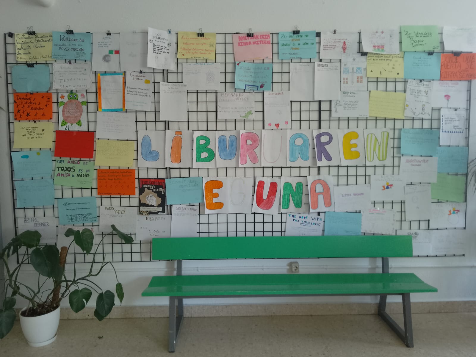 Murala: Idatzitako pasarte horiekin guztiekin, horma-irudi handi bat osatu dute ikastetxeko sarreran. Bertan, gure ikasleen gustu literarioen aniztasuna eta hizkuntzen arteko lotura ikus daiteke modu grafikoan.